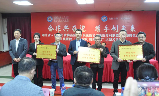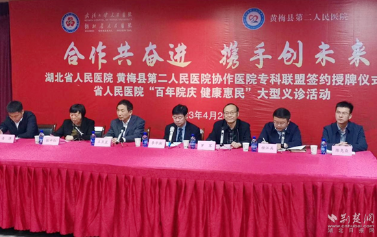 荊楚網(wǎng)(湖北日報網(wǎng))訊(通訊員劉學平)4月23日,湖北省人民醫(yī)院和黃梅縣第二人民醫(yī)院(孔壟鎮(zhèn)衛(wèi)生院)協(xié)作醫(yī)院專科聯(lián)盟簽約授牌暨省人民醫(yī)院“百年院慶 健康惠民”大型義診活動在黃梅縣孔壟鎮(zhèn)舉行。