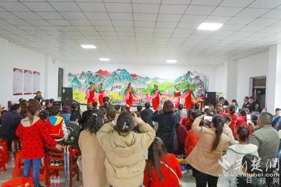 荊楚網(wǎng)(湖北日?qǐng)?bào)網(wǎng))訊(通訊員毛紅平 吳月兵 胡彩明)和風(fēng)送溫暖,春雨潤心田。4月22日,天空下著小雨,在紅安縣覓兒寺鎮(zhèn)普安橋的文化禮堂,里面一片熱鬧非凡,全鎮(zhèn)20多個(gè)村的群眾冒著小雨,爭相趕集文化匯演。