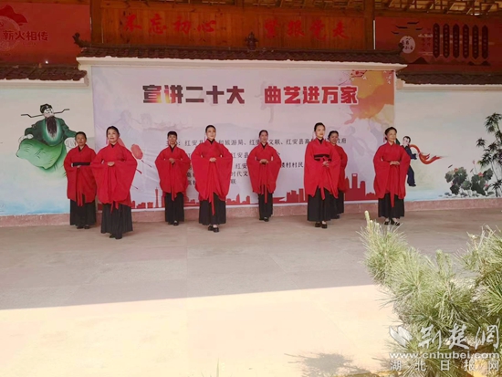 荊楚網(wǎng)(湖北日?qǐng)?bào)網(wǎng))訊(通訊員毛紅平)“走啊,去文化禮堂看戲喲!紅安縣曲藝家協(xié)會(huì)主席鄧永松,自編自唱湖北大鼓宣講黨的二十大精神真好看喲?!?月14日一大早,紅安縣高橋鎮(zhèn)高樓村黨支部書(shū)記吳勝祥就在朋友圈里向村民發(fā)出了通知。