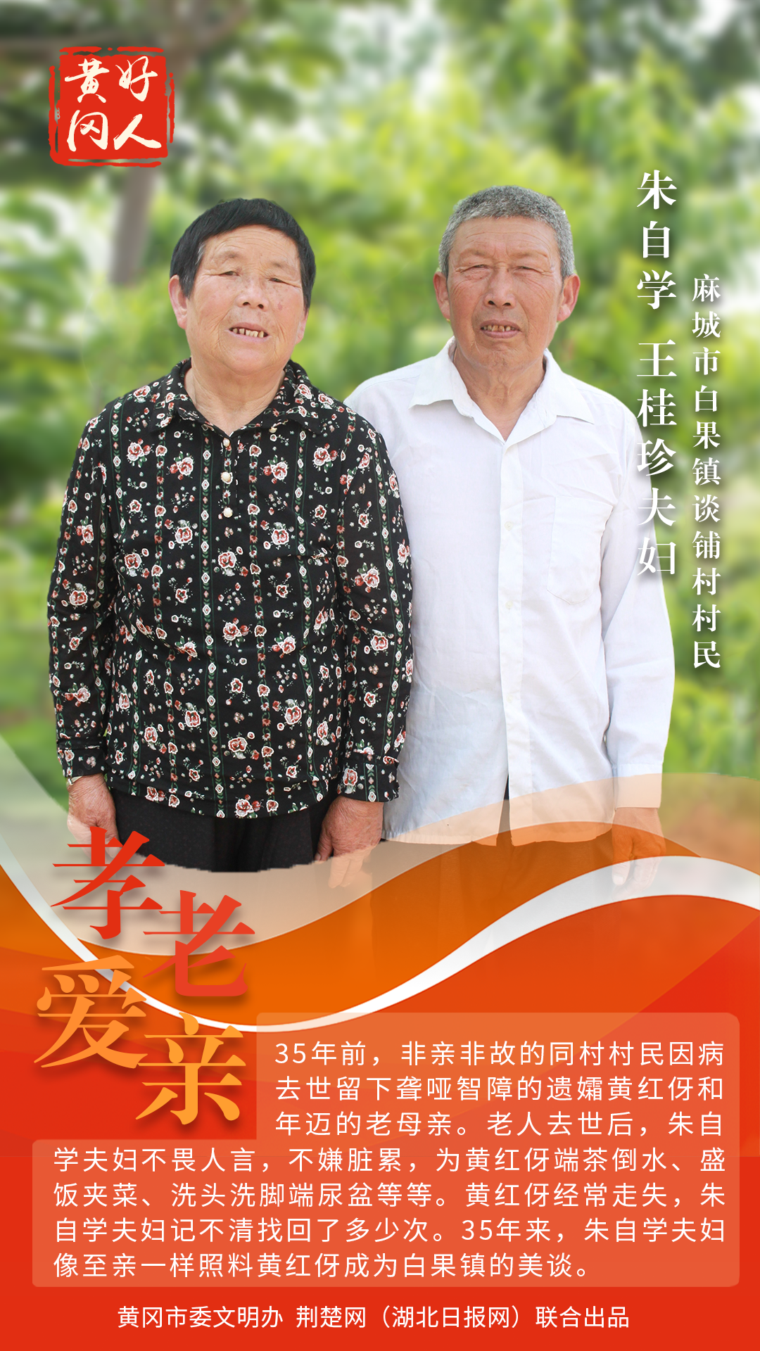 本期“黃岡好人”共有5組好人入選。他們中有“助人為樂、樂善好施”的陳光明;有“敢打硬仗、熱衷公益”的楊志謀;有“危難時刻顯身手”的杜友福;有“海歸博士變身田間耕夫”的潘新星;有“35年堅守,照顧殘障村民如至親”的朱自學(xué)、王桂珍夫婦。