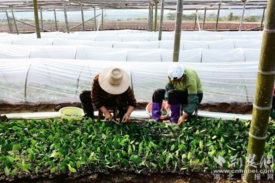 荊楚網(wǎng)(湖北日?qǐng)?bào)網(wǎng))訊(記者陶輝 通訊員嚴(yán)平)削穗、捆扎、栽植……近日,麻城市五腦山林場(chǎng)油茶良種苗木繁育圃一片忙碌。