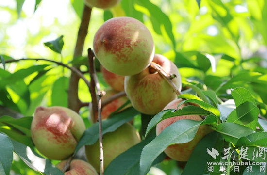 荊楚網(wǎng)(湖北日報(bào)網(wǎng))訊(記者陶輝 通訊員付海洋 李志來)三月賞桃花,六月采桃忙。6月9日,記者來到黃州區(qū)陳策樓鎮(zhèn)張新灣村桃園基地,看見一棵棵掛滿果實(shí)的桃樹沉甸甸地彎著腰,紅彤彤的桃子掩映在綠葉之中,甚是喜人。這里新引種的狗血桃、黃桃喜獲豐收,慕名而來的游客自由采摘,歡喜滿面。