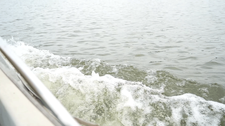 水在船尾劃出層層浪花