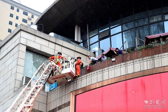 “喂,你好,我們金泰廣場這邊著火了......”活動現(xiàn)場還進行了大型商業(yè)綜合體消防應急救援演練。演練模擬金泰廣場一樓賣場起火,三、四樓有人員被困。演練單位同步啟動應急自救預案,廣播、安保人員迅速引導樓內(nèi)人員撤離,并啟動樓棟內(nèi)部固定消防設施。