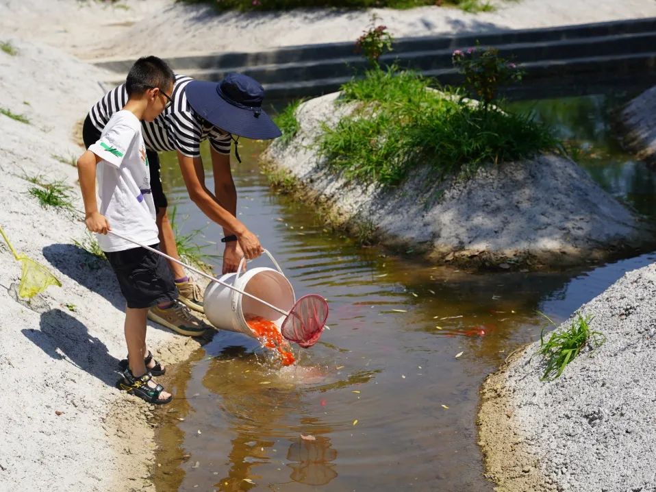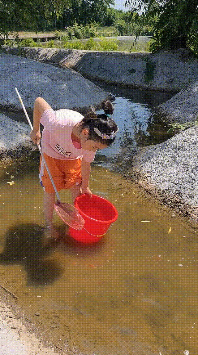 帶著小朋友在水里摸魚