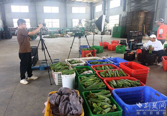 荊楚網(wǎng)(湖北日?qǐng)?bào)網(wǎng))訊(通訊員尹宏偉)6月27日,黃州區(qū)堵城鎮(zhèn)葉路洲余嶺村的湖北福耕生態(tài)農(nóng)業(yè)發(fā)展有限責(zé)任公司蔬菜分揀倉(cāng)庫(kù)里,公司負(fù)責(zé)人吳易翔正對(duì)著鏡頭,賣力地通過抖音直播帶貨。