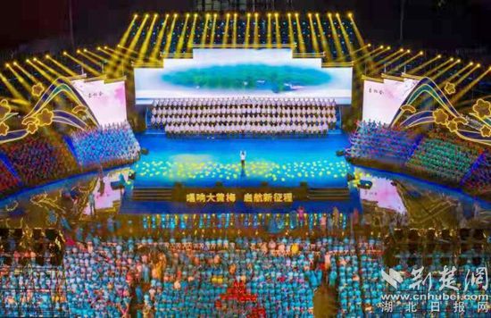 本屆黃梅戲藝術(shù)節(jié)的另一大特色是設(shè)立分會(huì)場。黃梅縣是千年古縣,更是黃梅戲藝術(shù)的發(fā)源地,本屆黃梅戲藝術(shù)節(jié)特別設(shè)置了黃梅縣分會(huì)場“唱響大黃梅”——一曲原創(chuàng)黃梅歌《靈潤黃梅》奏響演出序章,黨群口、宣傳口、教育口、政府口、政法口、小池鎮(zhèn)、孔壟鎮(zhèn)、黃梅鎮(zhèn)和全國戲迷等11個(gè)黃梅戲演唱方陣身著彩裝競唱黃梅戲經(jīng)典唱段,千余人齊唱《家在黃梅》,宏大的舞臺(tái),震撼的現(xiàn)場,讓戲迷們著實(shí)過足了戲癮。