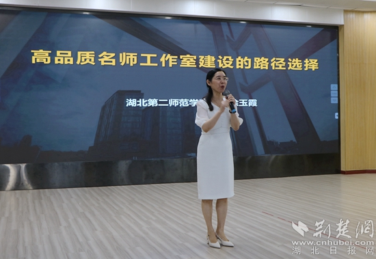 開班儀式結(jié)束后,湖北第二師范學(xué)院教授、基礎(chǔ)教育研究中心主任、特級教師、湖北名師涂玉霞作題為《高品質(zhì)工作室建設(shè)的路徑選擇》的主題講座。她圍繞工作室文化建設(shè)、運(yùn)行方式、成果彰顯三大塊,結(jié)合名師工作室積累的豐富案例、豐厚經(jīng)驗(yàn)和豐碩成果,系統(tǒng)地分享了高品質(zhì)工作室建設(shè)路徑、策略與方法。