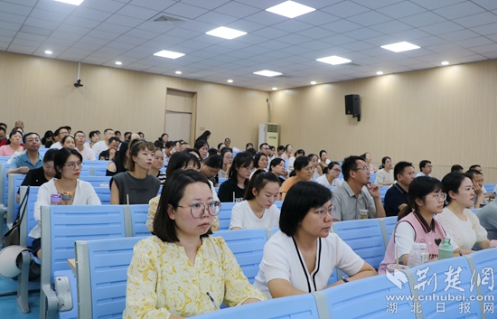 8月16日上午,黃石八中總校長、特級教師、正高級教師郭茂榮作題為《務(wù)教育之本 悟成長之道—教師工作坊建設(shè)的實(shí)踐與思考》的主題講座。他通過成長經(jīng)歷和典型案例,運(yùn)用風(fēng)趣的語言深刻詮釋了“立德樹人是教育之本,知其心是教師之本,悟其道是成長之要”,還交流了教師工作坊建設(shè)、運(yùn)行、管理、評價(jià)等方面的經(jīng)驗(yàn)。