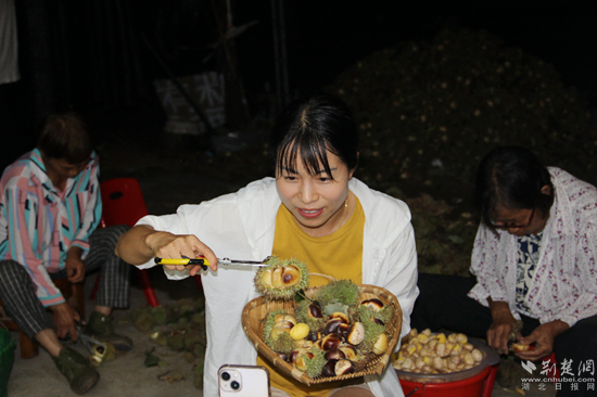 忙碌的夏夜,栗農(nóng)運(yùn)板栗。通訊員 供圖