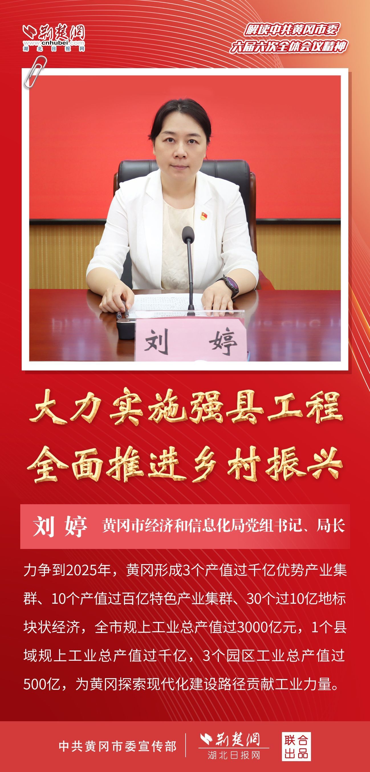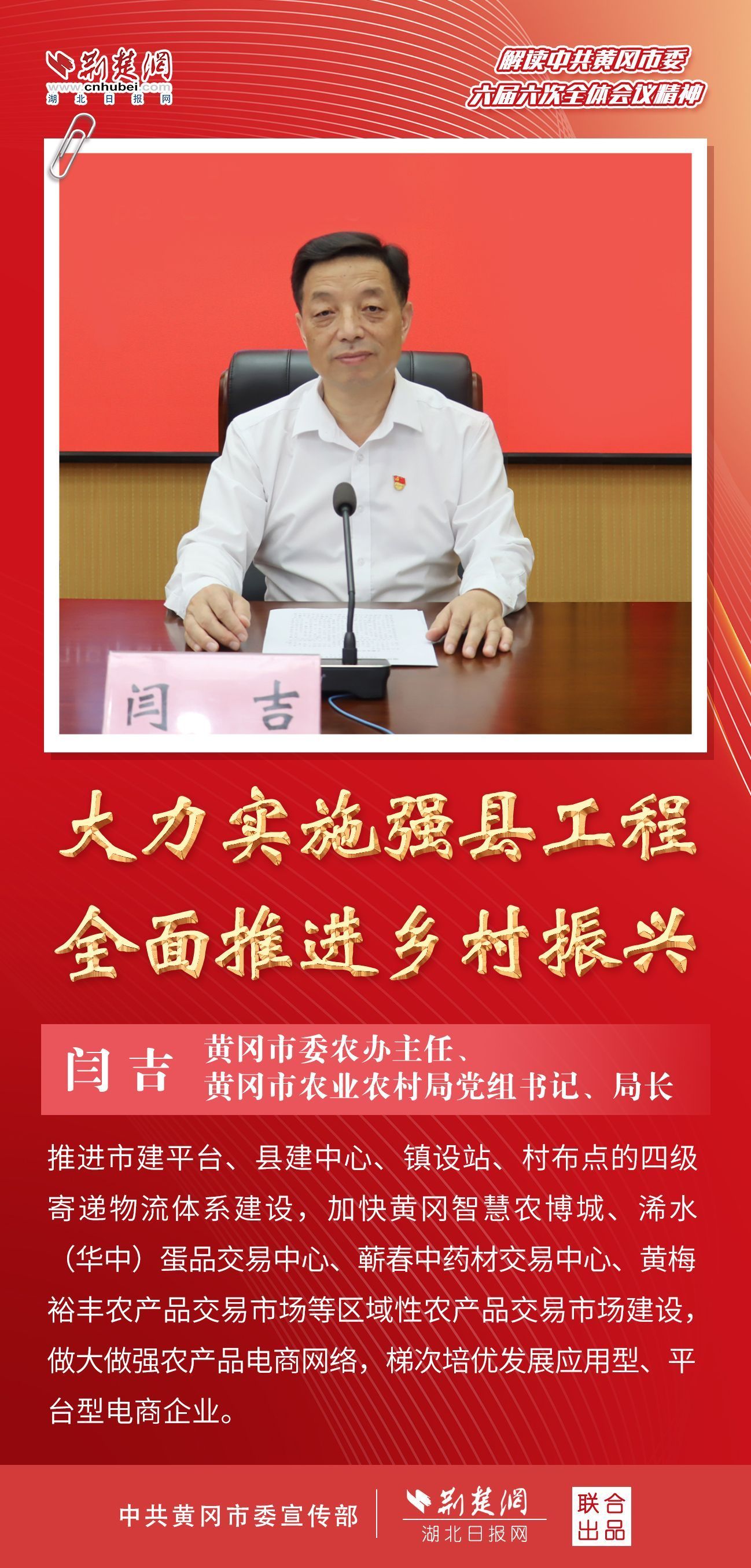 隨后,黃岡市住房和城鄉(xiāng)建設(shè)局、市經(jīng)濟和信息化局、市農(nóng)業(yè)農(nóng)村局主要負責人分別圍繞“‘四區(qū)聯(lián)動’城市更新”“推進制造強縣 培育特色產(chǎn)業(yè)集群”和“強化供應鏈思維 推動農(nóng)業(yè)產(chǎn)業(yè)轉(zhuǎn)型升級”等內(nèi)容作主題發(fā)布。