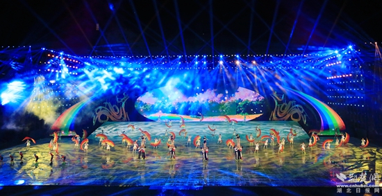 開(kāi)幕式上,篇章節(jié)目《千古風(fēng)流》《漫山紅遍》《家在畫(huà)中》《心安此處》等生動(dòng)展現(xiàn)了羅田的四大歷史文化名人、良好的山水生態(tài)、豐富的特產(chǎn)資源、醇厚的荊楚鄉(xiāng)風(fēng),充分彰顯了羅田千年古縣的底蘊(yùn)與魅力。