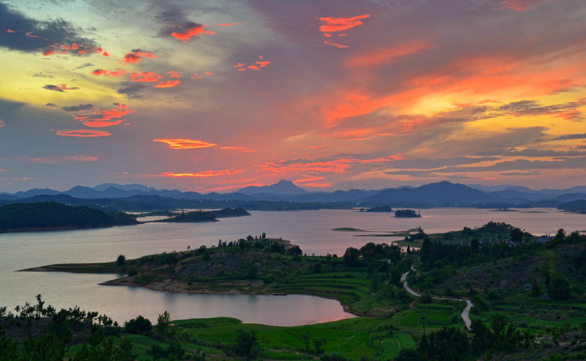 今日云景好,水綠秋山明。
