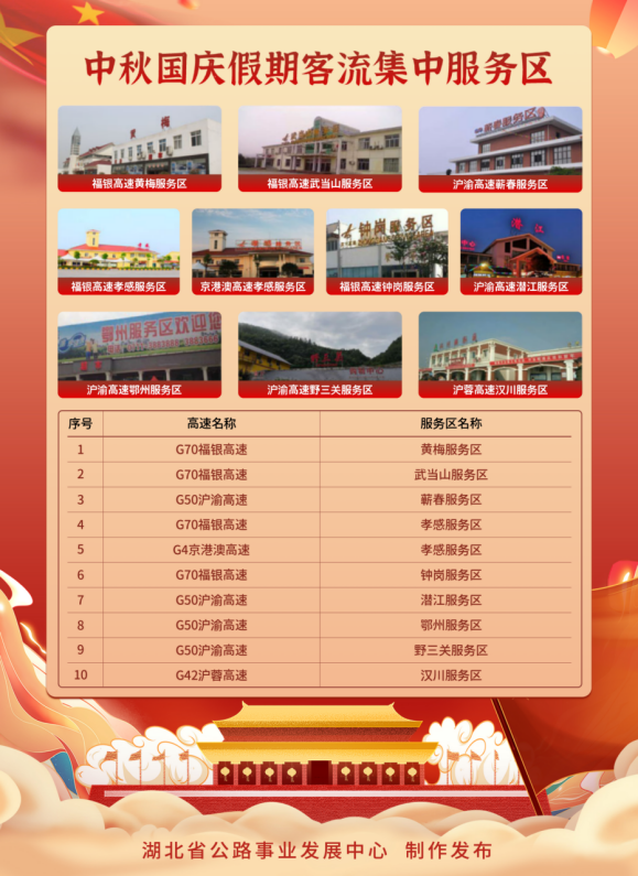 根據(jù)湖北省公路事業(yè)發(fā)展中心對近年來全省公路網(wǎng)運(yùn)行監(jiān)測數(shù)據(jù)分析,9月28日、29日出行車流主要由城市向周邊縣市、景區(qū)擴(kuò)散,10月5日、6日返程車流向城市匯集。