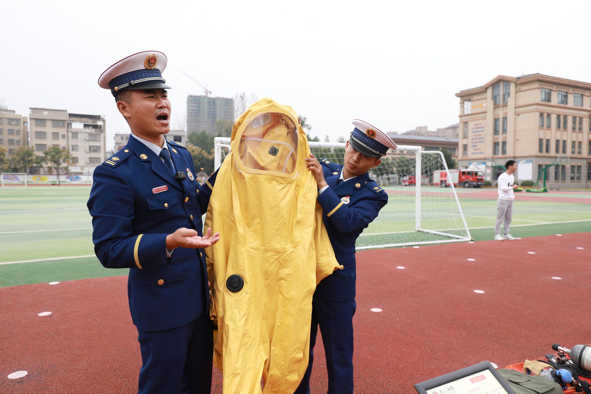隨后,天門(mén)競(jìng)陵消防救援站消防救援人員演示了滅火器撲救油盆火滅火演練,現(xiàn)場(chǎng)展示了滅火救援戰(zhàn)斗服和消防器材,并講解了消防救援作業(yè)中經(jīng)常使用的滅火器、破拆工具組,同時(shí)邀請(qǐng)部分師生上前體驗(yàn)使用。