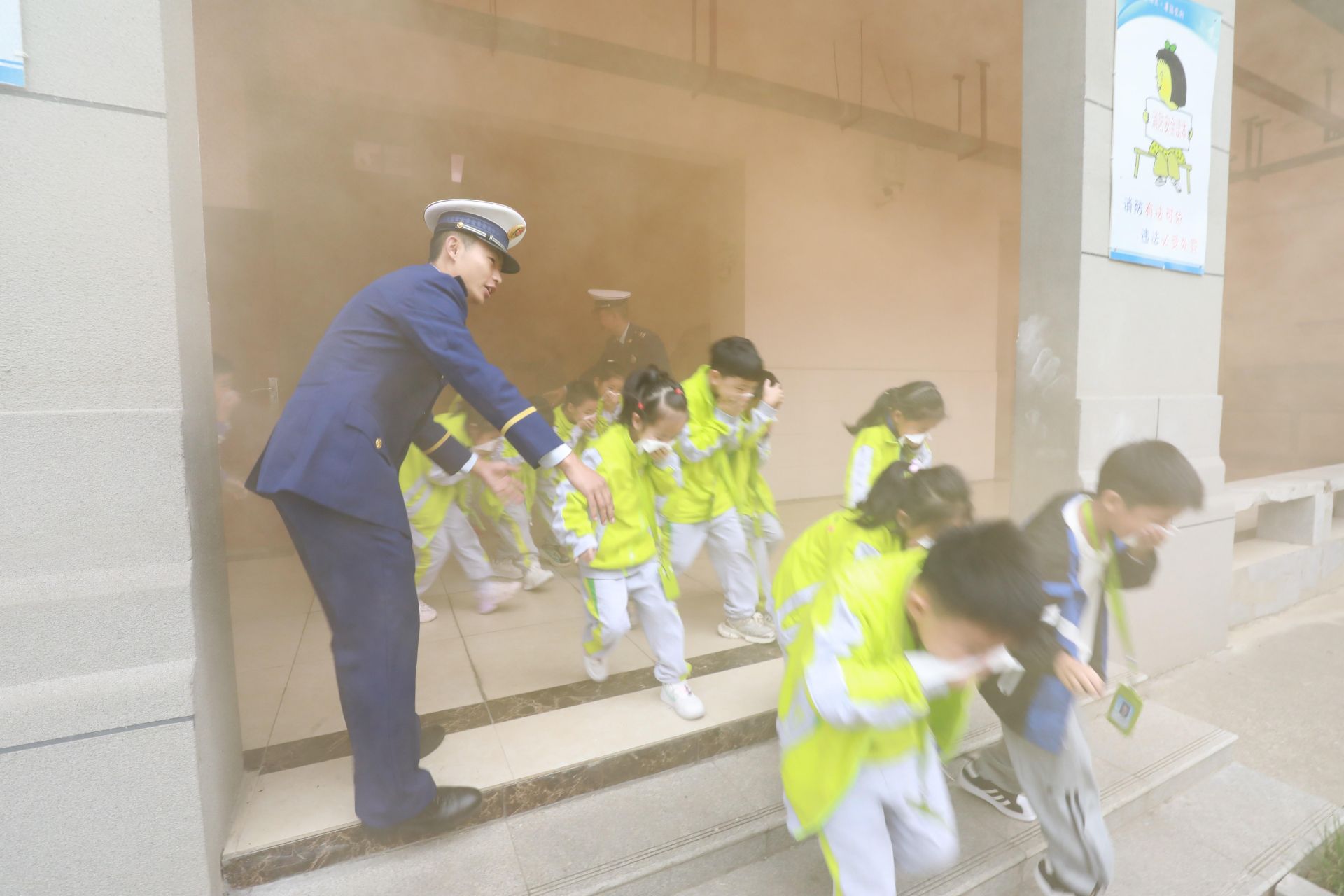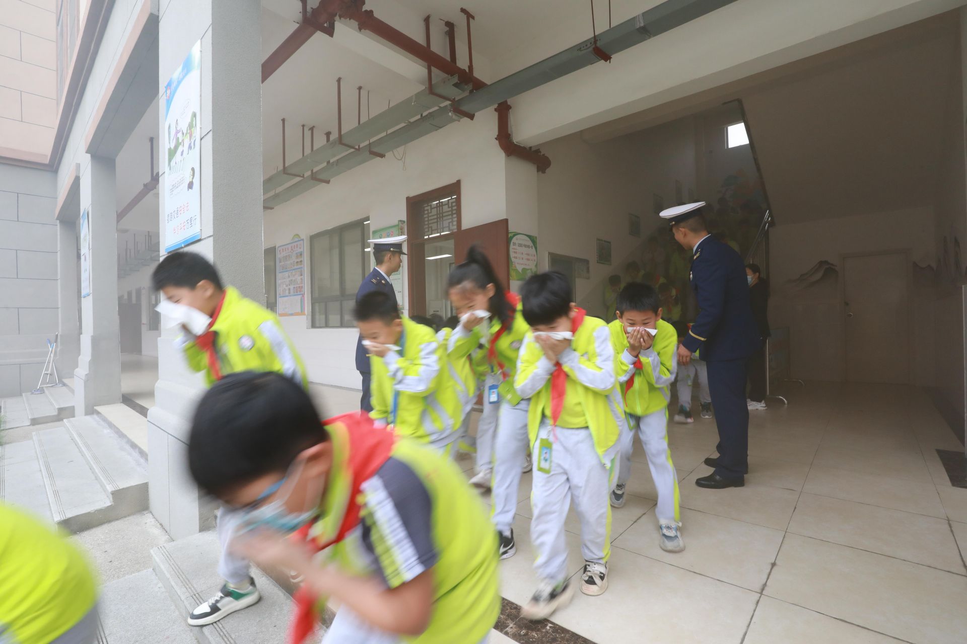 “演練專用煙霧彈被點(diǎn)燃,煙霧迅速?gòu)浡@,尖厲的警報(bào)聲破空而起,廣播提醒全體師生,學(xué)校發(fā)生險(xiǎn)情,請(qǐng)大家迅速撤離教室樓層。在導(dǎo)引員的指引下,參加演練的師生彎腰捂鼻,低位列隊(duì)下樓疏散,快速撤離到校園操場(chǎng)設(shè)置的安全區(qū),所有動(dòng)作從容不迫,有條不紊?!边@是天門(mén)杭州華泰中學(xué)附屬小學(xué)火災(zāi)現(xiàn)場(chǎng)撤離的逃生演練場(chǎng)景。