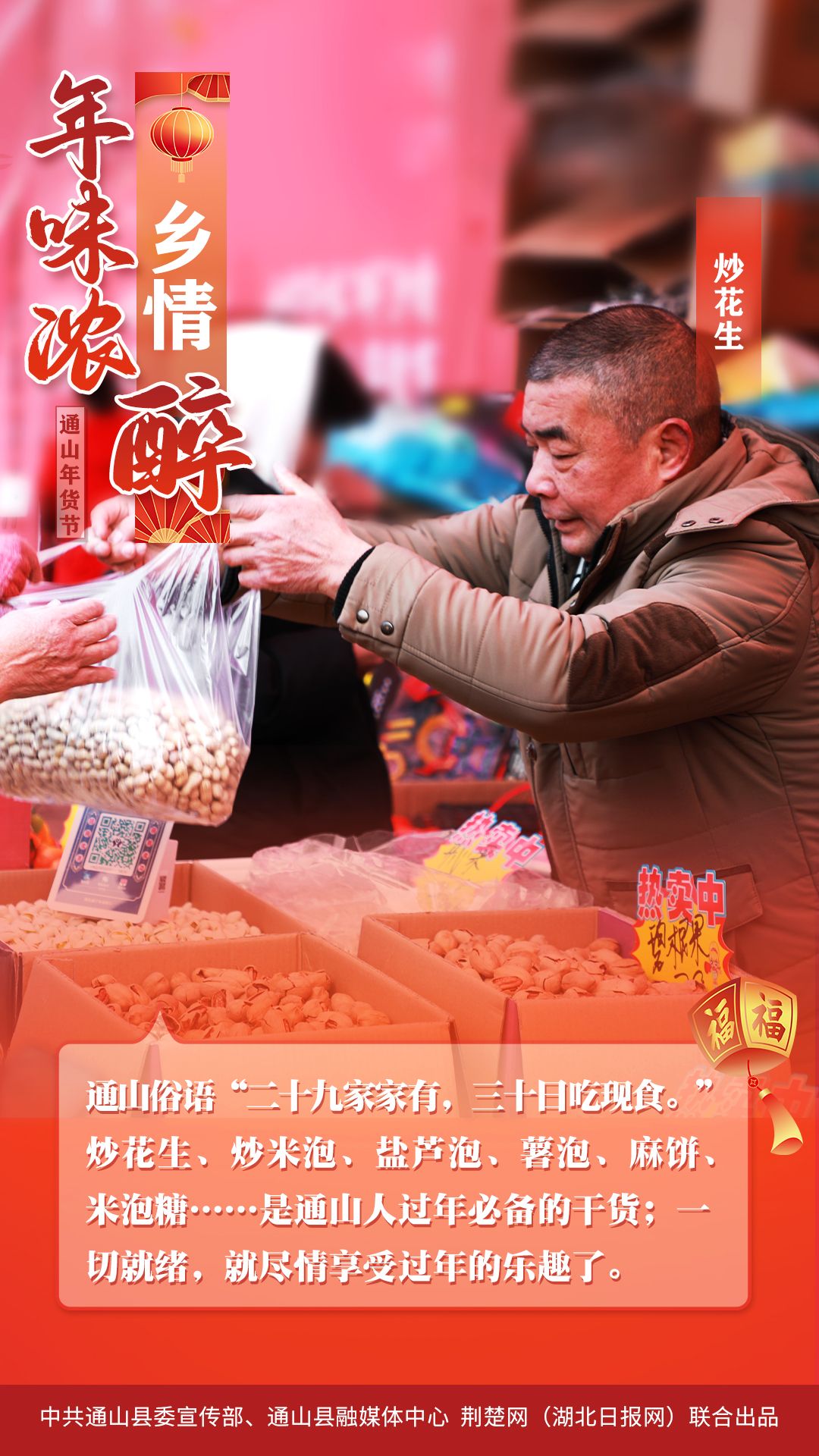 1月25日,2024通山縣首屆“年貨節(jié)”主會場,匯集傳統(tǒng)手工美食、酒類、飲品、食品、民俗文化、工藝品、金融通信服務(wù)、特色小吃8個主題消費展區(qū)190個展位,匯聚了該縣本地美味山珍,吸引了該縣群眾紛紛前來“打年貨”。