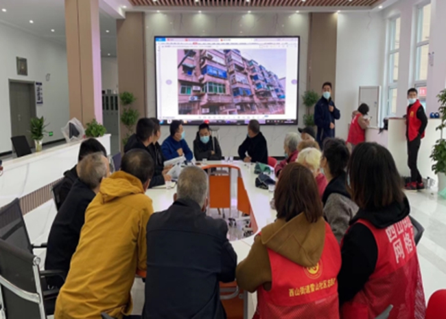 在34棟天面整治項(xiàng)目中,雷山社區(qū)通過“線上+線下”創(chuàng)新共謀方式對(duì)居民需求摸底,引導(dǎo)居民參與建言獻(xiàn)策,搭建社區(qū)議事廳-網(wǎng)格驛站-議事點(diǎn)等共謀陣地5處,從居民反映最強(qiáng)烈為主進(jìn)行開展入戶摸排了解情況。