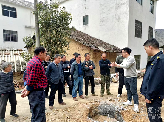 “你這新房墻修在這兒,屋檐都占到路了,別說(shuō)外人不同意了,我第一個(gè)不允許”,村民鄒治德的舊宅因垮塌拆除后,申請(qǐng)?jiān)贩?,但因?yàn)榕f址地基緊挨村道,3米的寬路行至此處只余2.6米,其親叔鄒生今聽(tīng)聞此事,說(shuō)出主持公道的話。審批小組聞?dòng)嵑蠹皶r(shí)趕到現(xiàn)場(chǎng),進(jìn)行溝通并展開(kāi)政策宣傳。