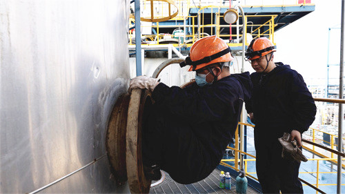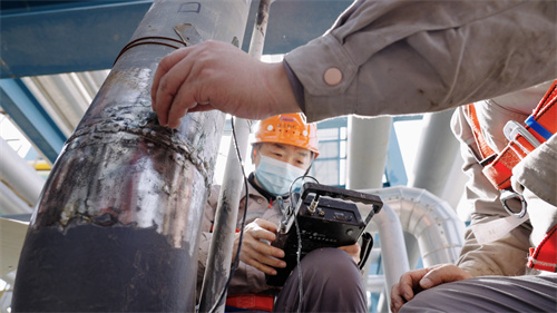 在蜿蜒曲長(zhǎng)的管道間,在錯(cuò)綜復(fù)雜的設(shè)備旁,在罐體聳立的高處,在狹窄逼人的容器里,檢驗(yàn)人員正爭(zhēng)分奪秒、兢兢業(yè)業(yè)開展檢驗(yàn)工作。檢驗(yàn)人員嚴(yán)格依據(jù)相關(guān)法律法規(guī)、安全技術(shù)規(guī)范及相關(guān)標(biāo)準(zhǔn),從資料審查、設(shè)備本體及運(yùn)行狀況、安全附件、壁厚檢測(cè)等項(xiàng)目逐一進(jìn)行檢查,確保檢驗(yàn)工作不留死角。對(duì)于檢驗(yàn)中發(fā)現(xiàn)的問題,檢驗(yàn)人員及時(shí)向企業(yè)反饋,幫助企業(yè)整改,直至隱患消除。