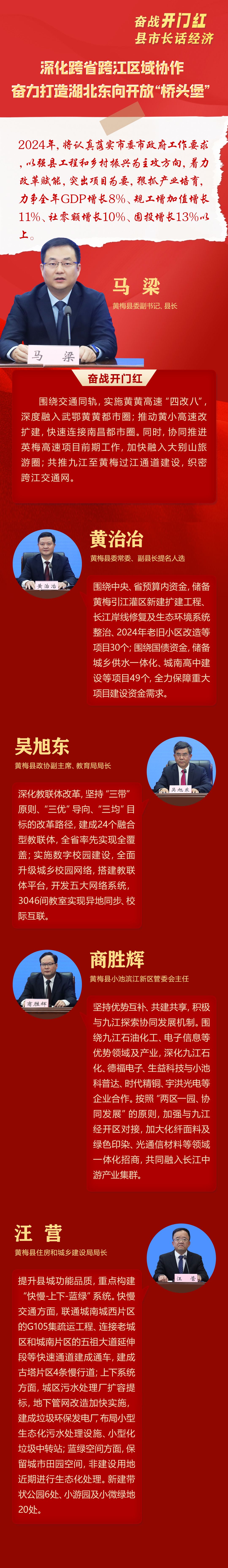 4月16日,黃岡召開“奮戰(zhàn)開門紅 縣市長(zhǎng)話經(jīng)濟(jì)”系列新聞發(fā)布會(huì),黃梅縣就“深化跨省跨江區(qū)域協(xié)作,奮力打造湖北東向開放‘橋頭堡’”相關(guān)情況回答社會(huì)關(guān)切。