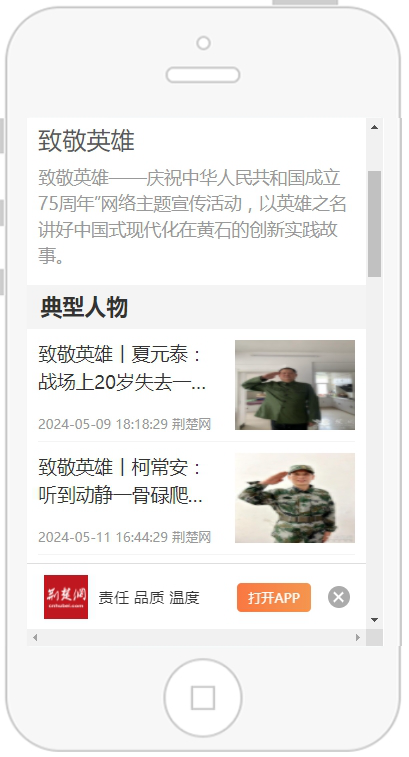 為向歷史開掘精神資源,營造崇尚英雄、學習英雄、關愛英雄的濃厚氛圍,黃石市委網信辦、市退役軍人事務局聯(lián)合荊楚網(湖北日報網)啟動《致敬英雄》大型網絡專題宣傳。