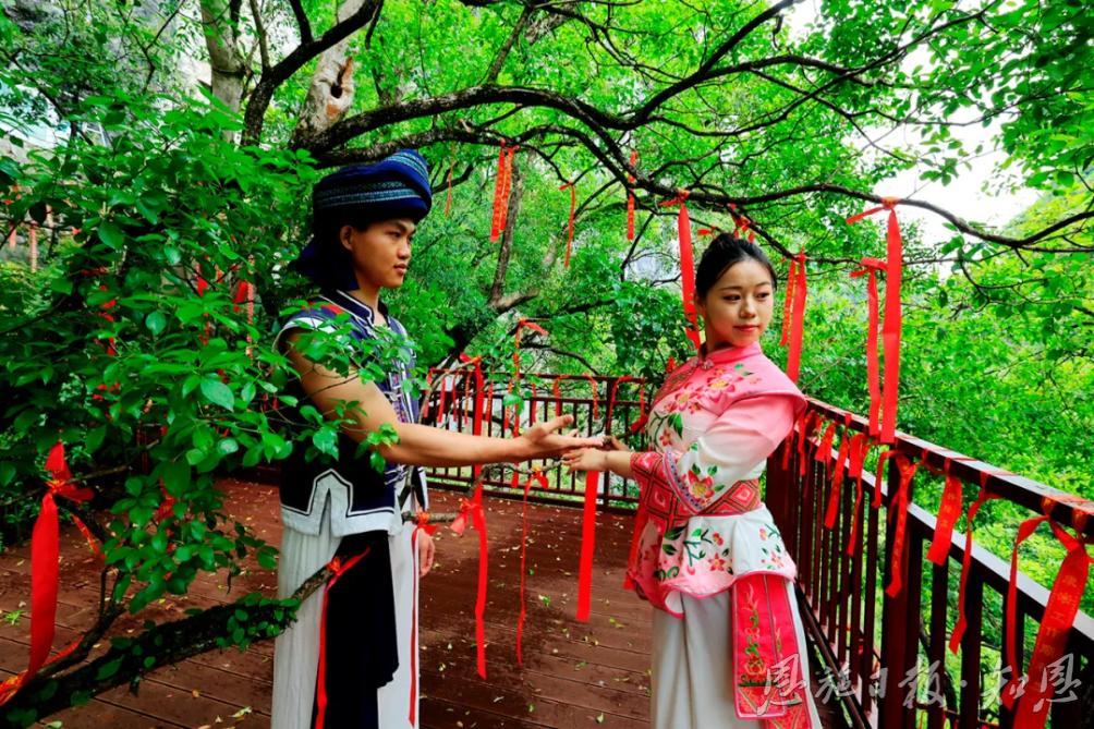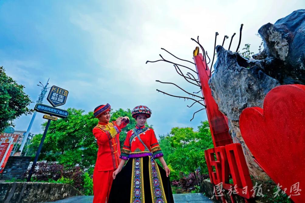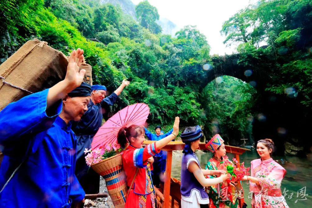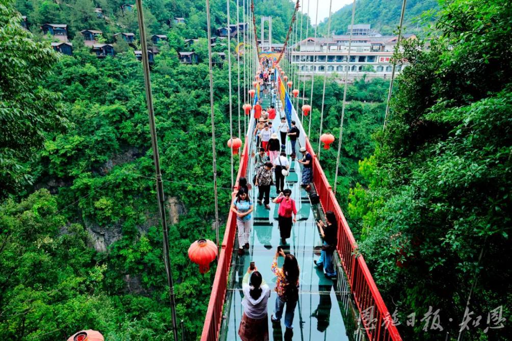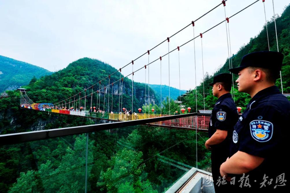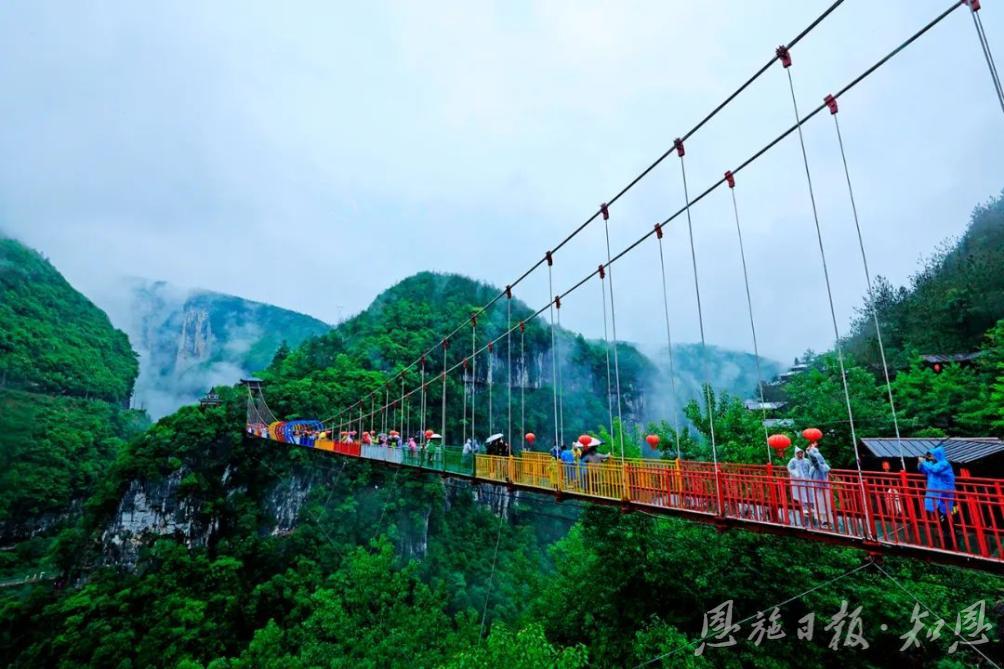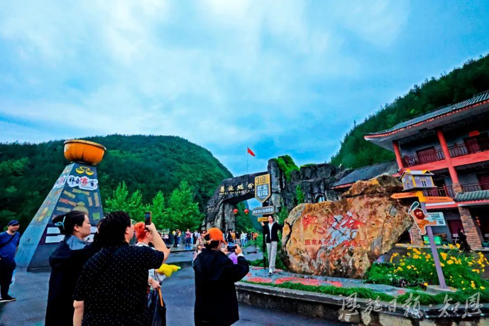 恩施地心谷,可以說(shuō)是旅游業(yè)中的一個(gè)神奇地標(biāo)!這里有318國(guó)道1520里程碑,這里有滬渝高速1314公里里程碑,打卡地心谷,一路都有愛意相隨。當(dāng)“5·19”與“5·20”邂逅,使旅程變得格外生動(dòng)而有趣。在中國(guó)旅游日到來(lái)之際,天南海北的游客紛紛慕名而來(lái),他們走過(guò)驚險(xiǎn)的懸空玻璃橋,漫步幽奇的懸崖棧道,打卡“地之心”,體驗(yàn)刺激的崖漂,聽喜花鼓這邊唱來(lái)那邊和……一步一喜,一步一樂。