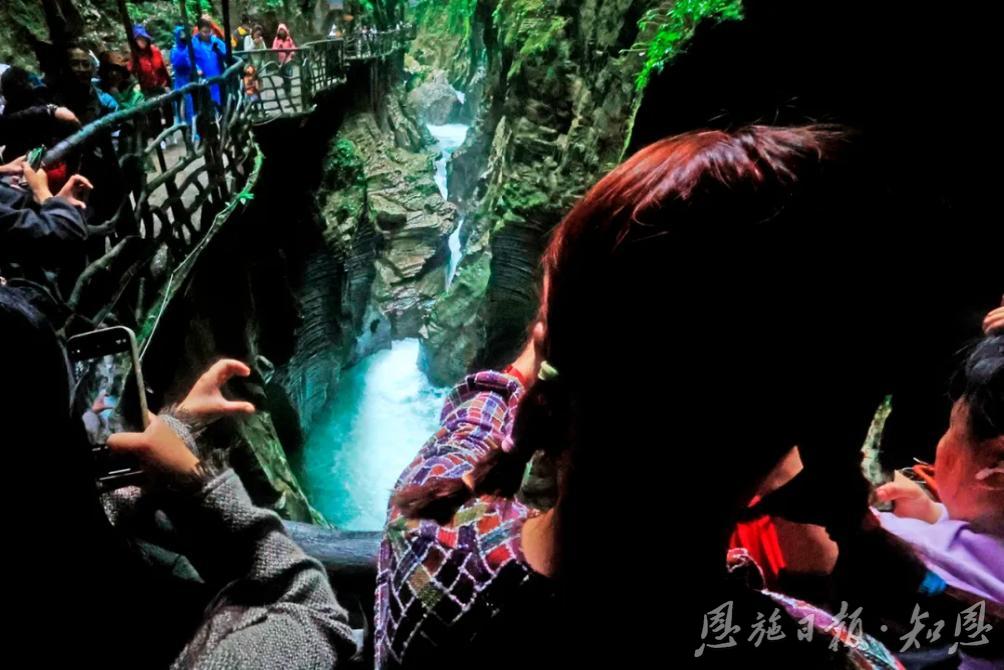 恩施地心谷景區(qū),險(xiǎn)奇中自帶幾分妖嬈。依舊是游人如織,依舊是歡聲笑語(yǔ),當(dāng)游客沉醉于神奇大自然賦予的美景中, “5·19”中國(guó)旅游日在這里有了最好的注釋。