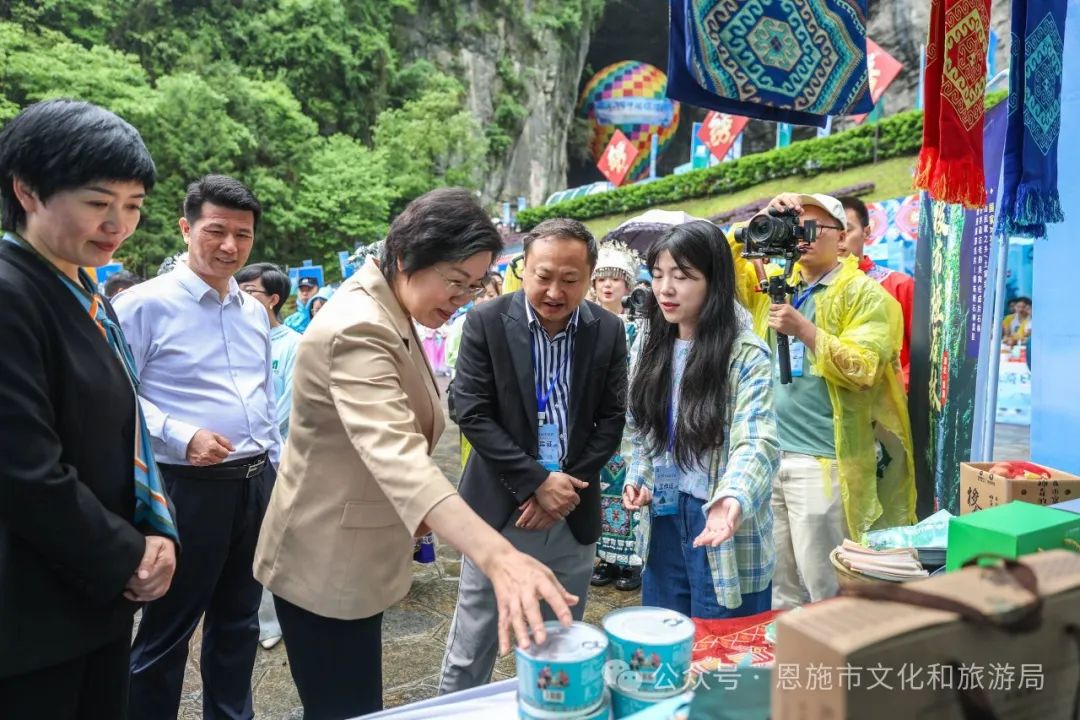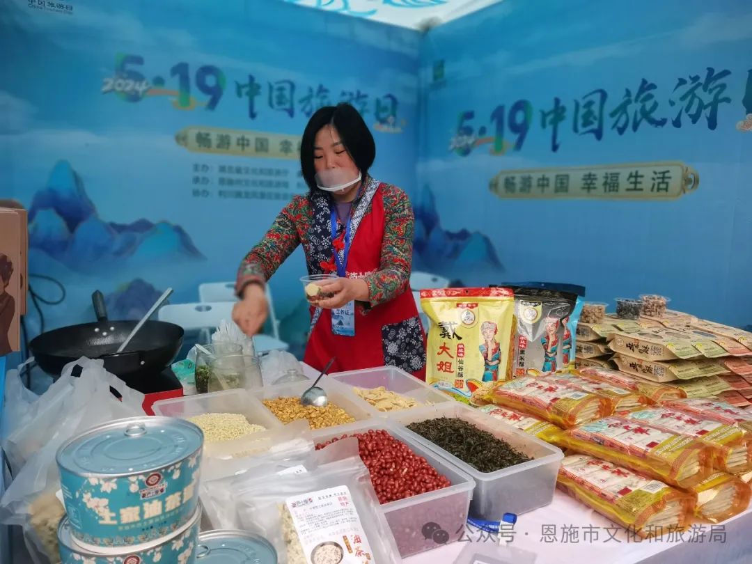 為充分展示恩施市豐富多樣的文化旅游資源,提升恩施旅游品牌形象,凝聚行業(yè)力量,恩施市組織了包括恩施大峽谷、梭布埡石林、鹿院坪、土司城、龍麟宮、布衣織秀、芭土康、覓福文創(chuàng)、京豐農(nóng)業(yè)在內(nèi)的10余家文旅企業(yè)在旅游集市上展示和銷售30余種特色文創(chuàng)產(chǎn)品及農(nóng)產(chǎn)品。精美的西蘭卡普織錦、富有地域特色的文創(chuàng)產(chǎn)品、香氣四溢的油茶湯、恩施玉露、恩施小土豆等,吸引了眾多游客駐足購(gòu)買。