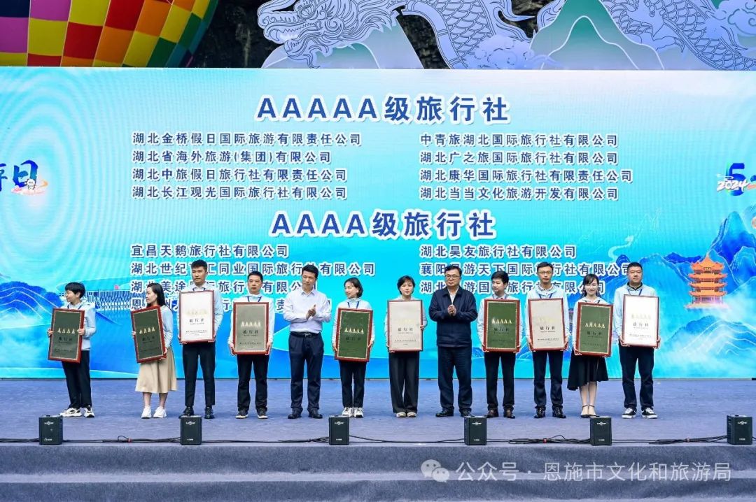 5月19日的啟動(dòng)儀式上,湖北省文化和旅游廳對(duì)新評(píng)定的5A級(jí)、4A級(jí)旅行社進(jìn)行了授牌,其中,恩施市申報(bào)的想游國(guó)際旅行社榮獲國(guó)家4A級(jí)旅行社。為有效地傳播和弘揚(yáng)湖北豐富的文化遺產(chǎn)和知音文化,提升湖北文化的影響力和知名度,活動(dòng)現(xiàn)場(chǎng)湖北省文化和旅游廳為10名獲評(píng)的“知音湖北文旅推介官”頒獎(jiǎng),恩施紫路旅行社向紅新被授予了“知音湖北文旅推介官”榮譽(yù)稱號(hào)。