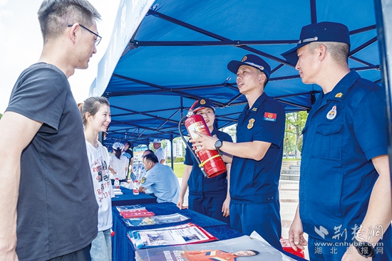 同時,黃石市消防救援支隊支隊依托活動,精心準備以防火、滅火、逃生為主要內容的宣傳單、宣傳手冊、掛圖等宣傳資料以及咨詢臺,發(fā)放《居家防火指南》《燃氣安全提示》《各類場所逃生知識》、消防宣傳畫報等800余份宣傳資料,提醒廣大人民群眾要提高消防安全意識和自防自救能力,確保自身安全。
