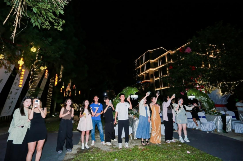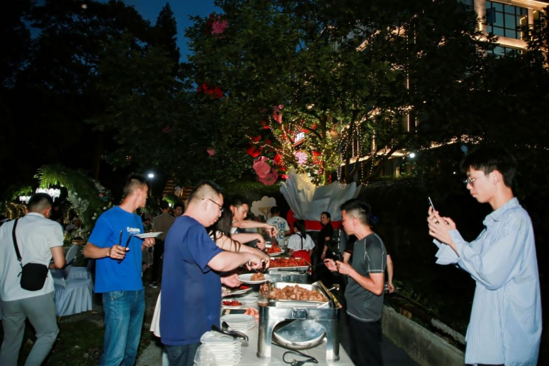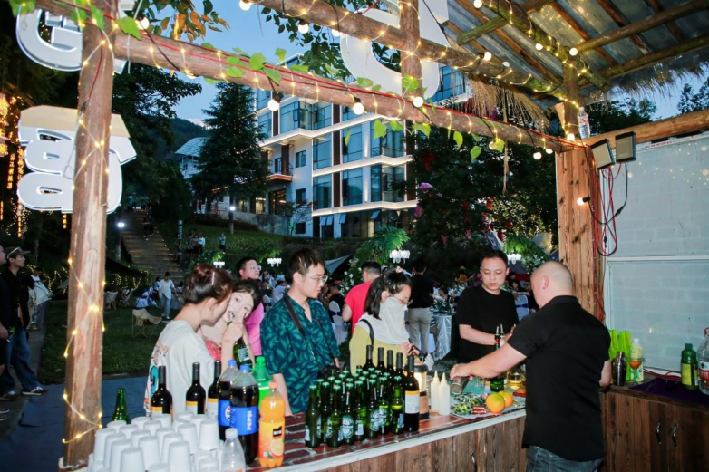 石如歌,林如曲,暮色四合,山野撩人。下午19時,石海別院音樂酒會在一首《光輝歲月 》中拉開帷幕,為嘉賓帶來了一場精彩的視聽盛宴。現(xiàn)場嘉賓與樂隊歌手積極互動,盡情享受美食啤酒小龍蝦,感受了別樣的音樂石林。