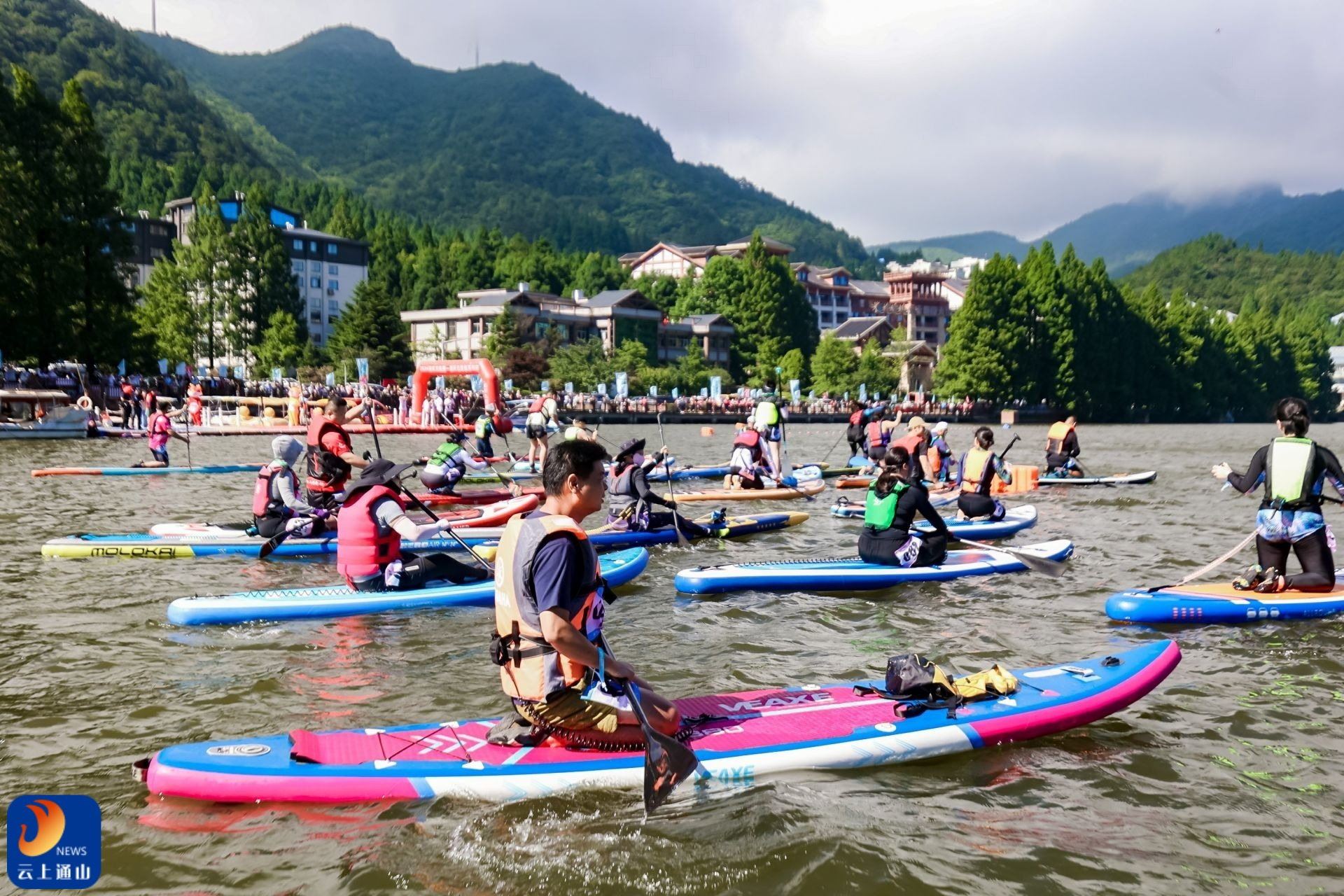 九宮山上、云中湖畔,百舸爭流、千帆競發(fā)的“速度與激情”吸引了來自全國各地游客的目光。7月6日,知音湖北 御風(fēng)沖浪——2024湖北文旅第一屆夏日槳板系列挑戰(zhàn)賽在風(fēng)景如畫的云中湖正式開賽,來自全國各地300多名參賽隊(duì)員齊聚國家4A景區(qū)九宮山,迎風(fēng)揮槳,踏浪而行,盡情享受在藍(lán)天碧海間逐浪飛馳的快樂,也拉開了“九宮清涼,避暑天堂”九宮山避暑季的大幕。