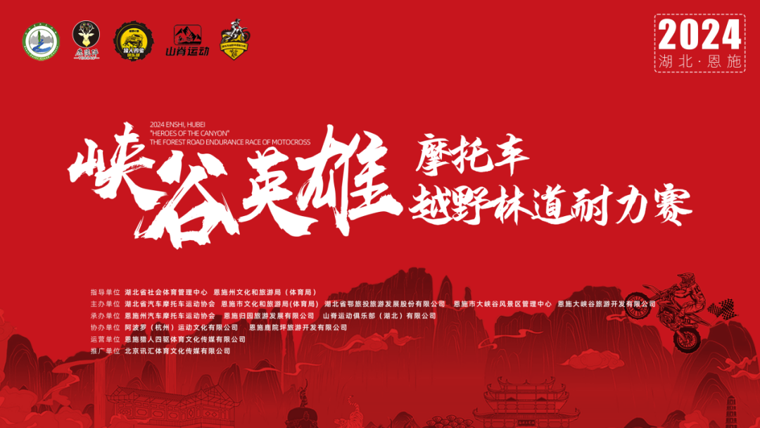 8月23日至25日2024“峽谷英雄”摩托車越野林道耐力賽將在世界硒都—湖北恩施舉行。屆時來自全國各地的摩托車愛好者和職業(yè)賽車手將會齊聚恩施參賽競技,同時體驗(yàn)恩施山水風(fēng)光、感受恩施的風(fēng)土人情。