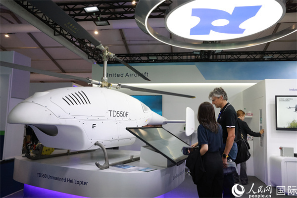 聯(lián)合飛機展出的TD550無人直升機受到業(yè)內(nèi)人士的關(guān)注。人民網(wǎng)記者 邢雪攝