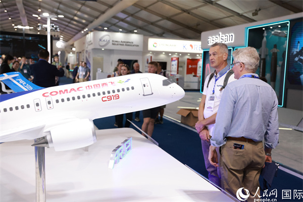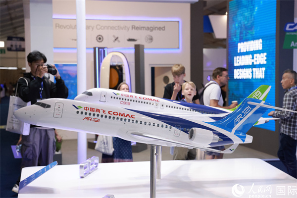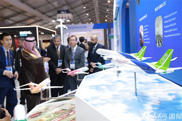 展覽期間C919系列飛機模型吸引了眾多外國觀眾和業(yè)內(nèi)人士。人民網(wǎng)記者 邢雪攝