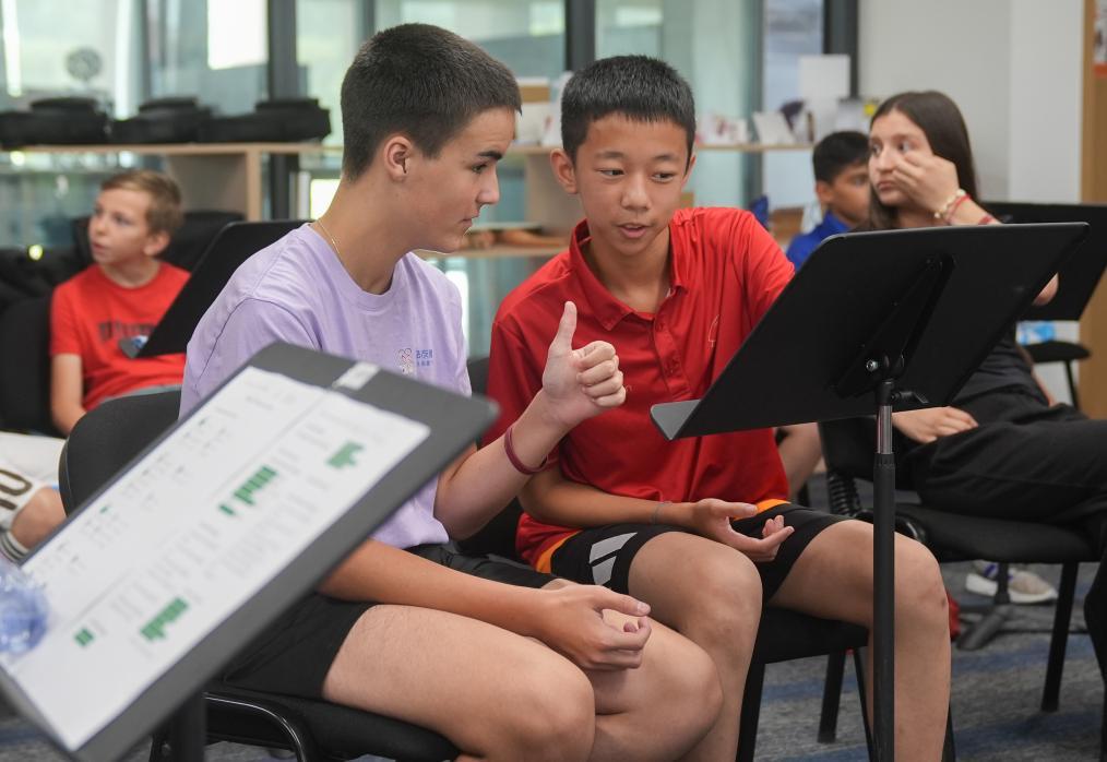 7月26日,在湖北武漢愛莎學校,中法青少年在上合唱課。新華社記者 杜子璇 攝
