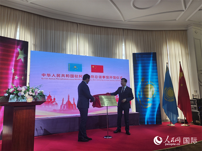 人民網(wǎng)阿克托別7月30日電 (記者李強)7月30日,中國駐哈薩克斯坦阿克托別市總領事館舉行開館儀式。中國駐哈薩克斯坦大使張霄、哈薩克斯坦阿克糾賓州州長沙哈羅夫出席揭牌儀式并致辭,領區(qū)政府官員及中資機構、兩國媒體代表、各界友好人士等約200人出席此次活動。