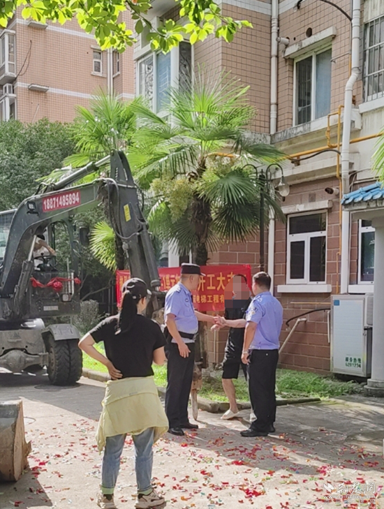 當(dāng)天上午,正當(dāng)黃石天方小區(qū)某單元住戶們慶祝加裝電梯開工大吉之時,該單元一樓住戶盧某跳了出來,以對補(bǔ)償不滿意等為由,大鬧施工現(xiàn)場。社區(qū)工作人員、居民雖多次上前勸阻,但盧某均不予理會。萬般無奈之下,施工方只得報警求助。民警現(xiàn)場了解情況后,將盧某帶離施工現(xiàn)場,并進(jìn)行了法律教育和宣傳引導(dǎo)。