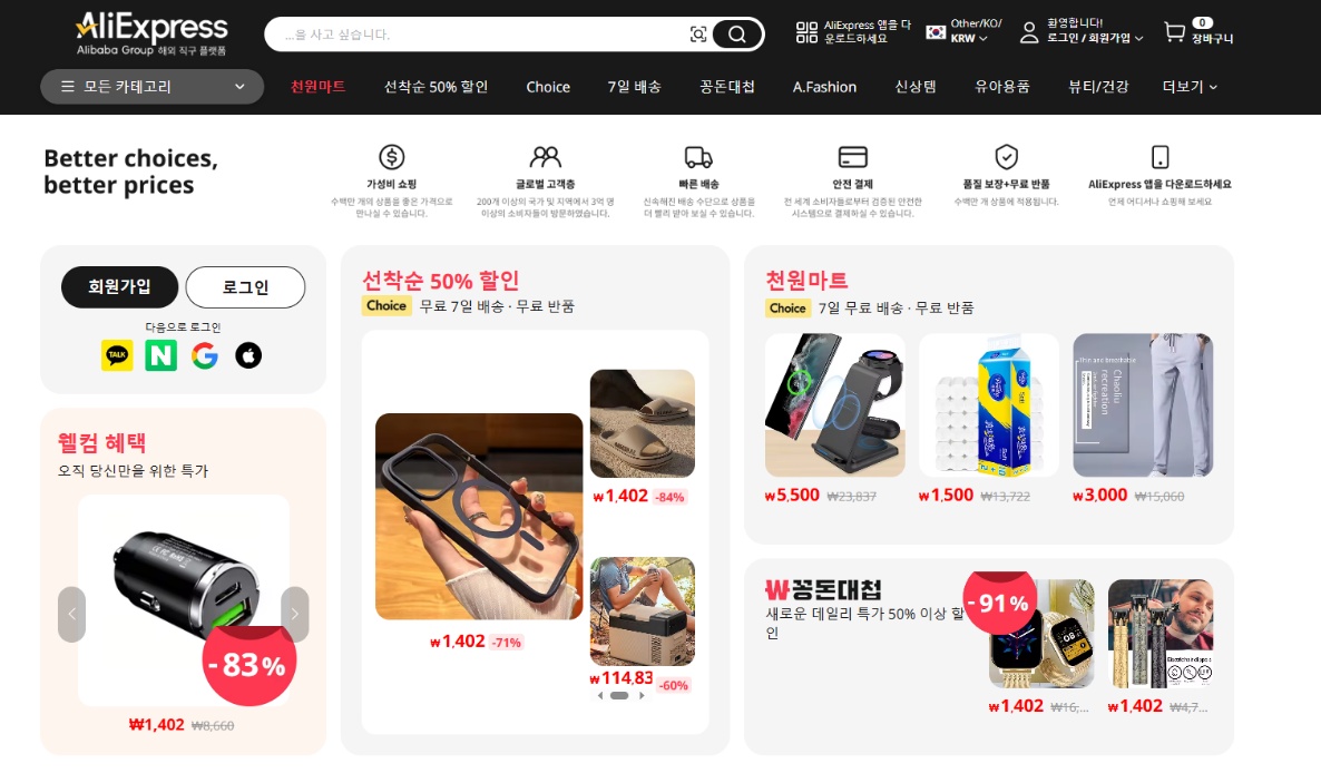 全球速賣通韓國網(wǎng)站首頁。圖源:網(wǎng)頁截圖