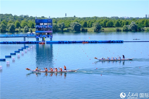 8月10日,中國競技龍舟在馬恩河畔韋爾航海體育場進行展示表演。人民網(wǎng)記者 尚凱元攝