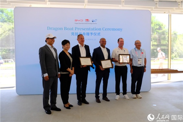 賽后舉行的龍舟贈與儀式。人民網(wǎng)記者 尚凱元攝