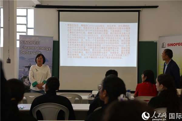 中國石化集團中南美代表處總代表、國勘巴西公司總經理張連華在開班儀式上致辭。人民網記者 陳海琪攝