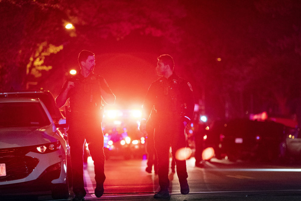 2022年4月22日,警察在美國首都華盛頓西北部一處街區(qū)發(fā)生的槍擊事件現(xiàn)場工作。新華社記者劉杰攝