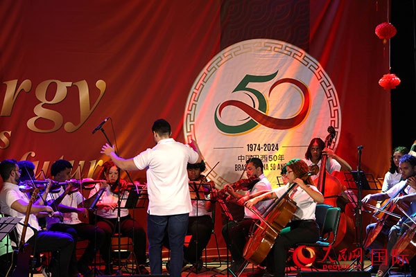 人民網(wǎng)里約熱內(nèi)盧8月16日電 (記者時(shí)元皓)為慶祝中國和巴西建交50周年,當(dāng)?shù)貢r(shí)間16日晚,中國國家電網(wǎng)巴西控股公司(簡稱“國網(wǎng)巴控公司”)在里約熱內(nèi)盧舉行“能源引領(lǐng)未來”主題文藝演出活動(dòng),馬累明日之潮交響樂團(tuán)等藝術(shù)團(tuán)體、藝術(shù)家?guī)砭矢栉璞硌?,中巴各界人士百余人觀看演出。
