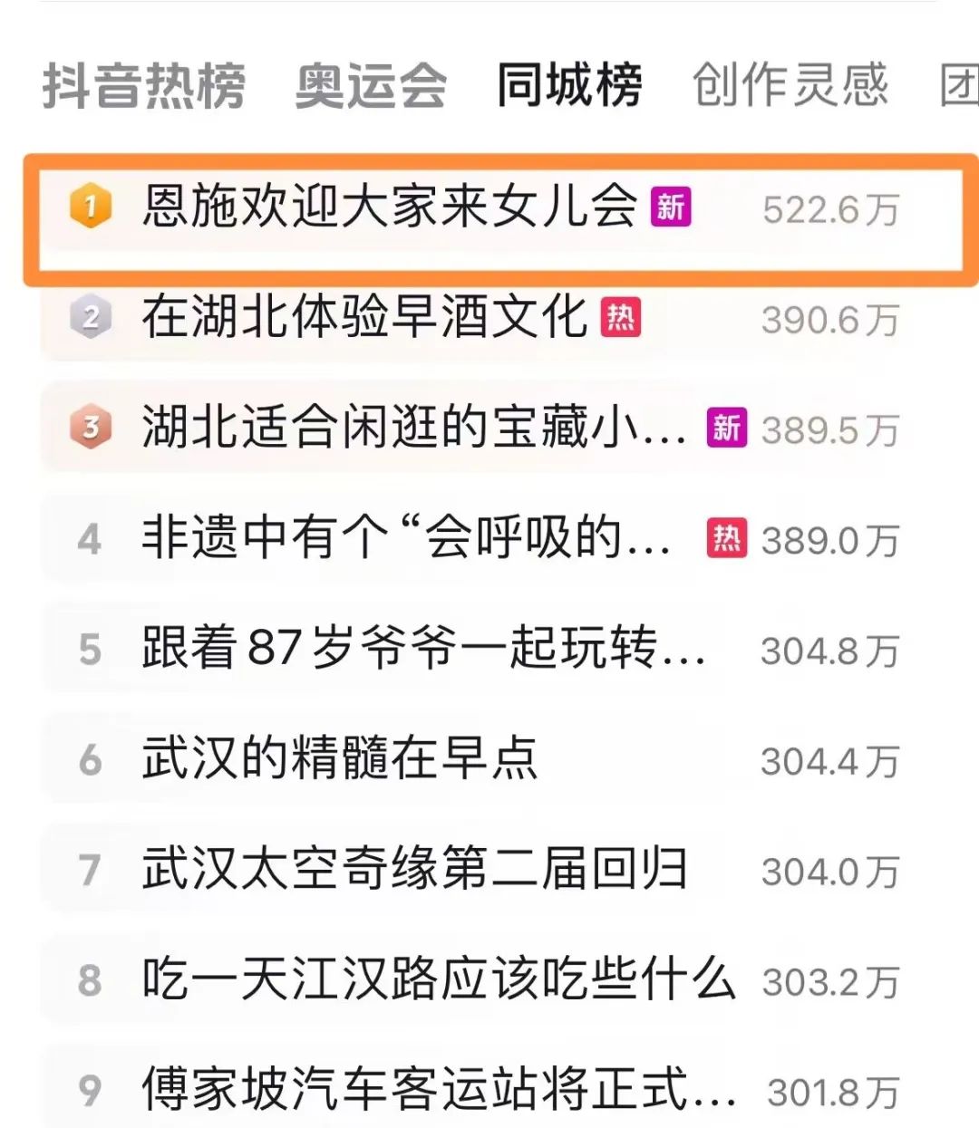 (1)#2024恩施女兒會浪漫開幕#歡迎大家來恩施女兒會#榮登微博熱搜榜和抖音同城熱搜榜一,助力高光傳播