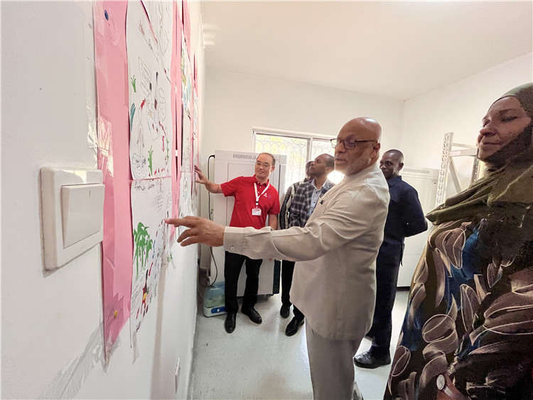 坦桑尼亞桑給巴爾衛(wèi)生部部長(zhǎng)馬茲伊參觀科普室。專家組供圖