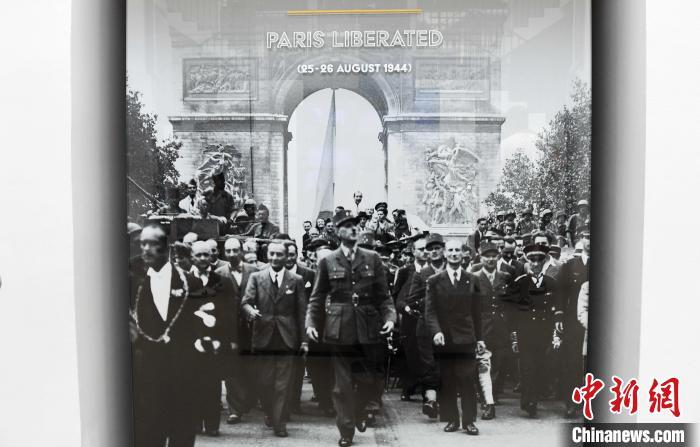 法國近日舉行一系列活動,紀念巴黎從納粹德國占領(lǐng)下解放80周年。圖為8月24日在巴黎解放博物館拍攝的戴高樂將軍在巴黎解放之際步入香榭麗舍大街的歷史照片。中新社記者 李洋 攝