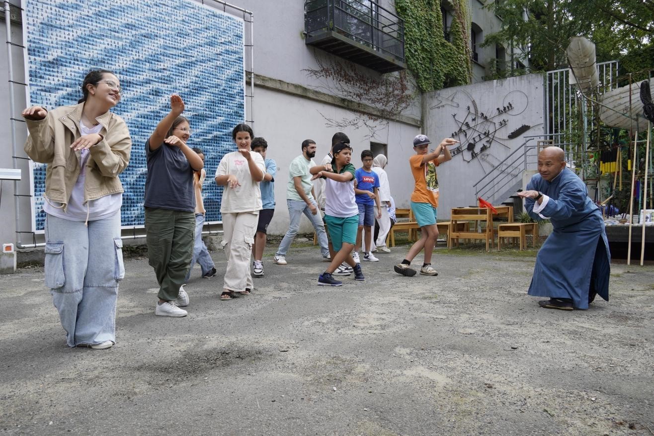 孩子們與魯汶大學(xué)武術(shù)老師、北少林長(zhǎng)拳傳人羅師傅學(xué)習(xí)中國(guó)功夫。比利時(shí)維他命文化傳媒供圖