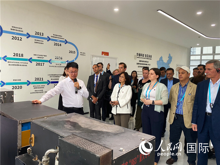 “隨著技術(shù)的不斷進(jìn)步,我相信未來氫能源的應(yīng)用場景會(huì)不斷拓展,前景會(huì)更加廣闊?!痹趦|華通動(dòng)力科技有限公司生產(chǎn)車間,總經(jīng)理于民與駐華外交官和國際組織駐華代表就氫能源發(fā)展的關(guān)切問題,展開熱烈討論。
